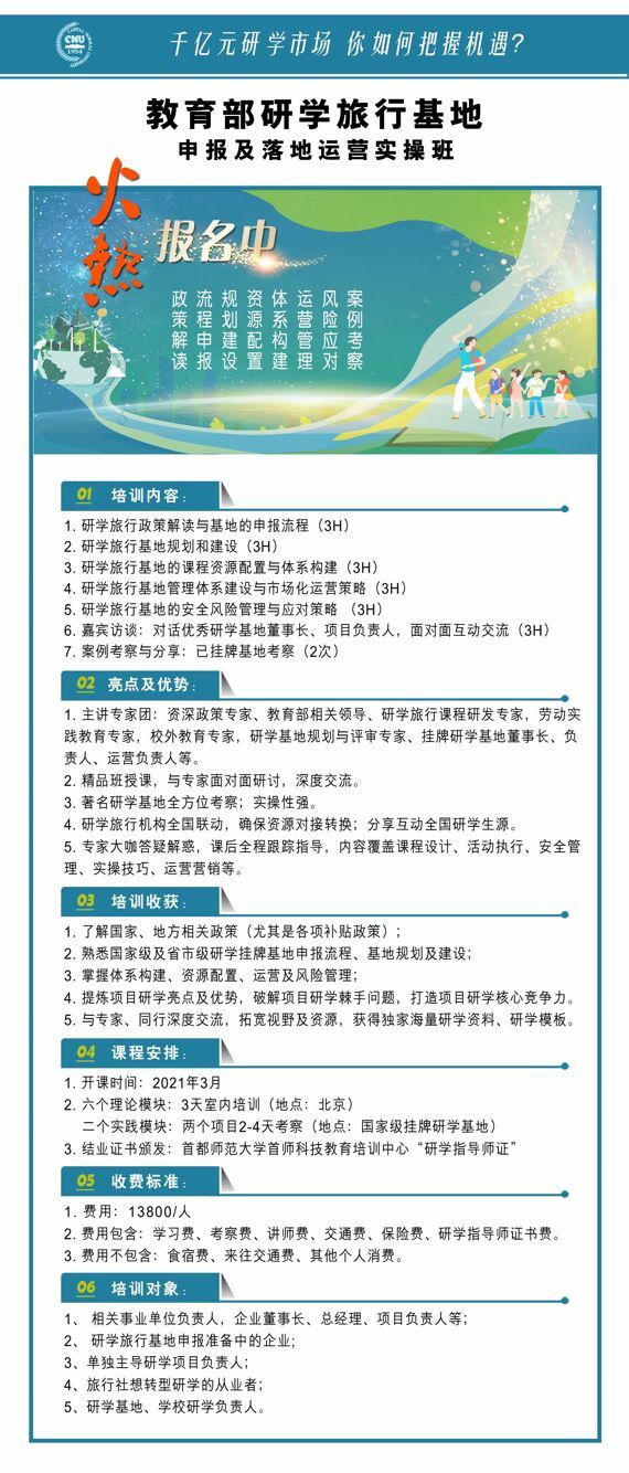 教育部研学旅行基地申报及落地运营实操班2021年开课计划