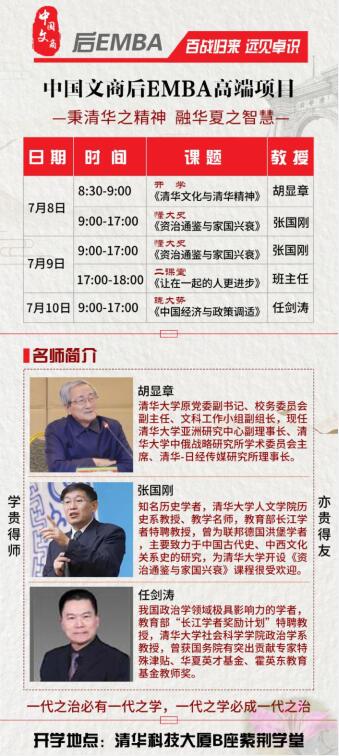 2021级7月8—10日清华园盛大开学,三位清华名师主讲,百位文商精英参加。