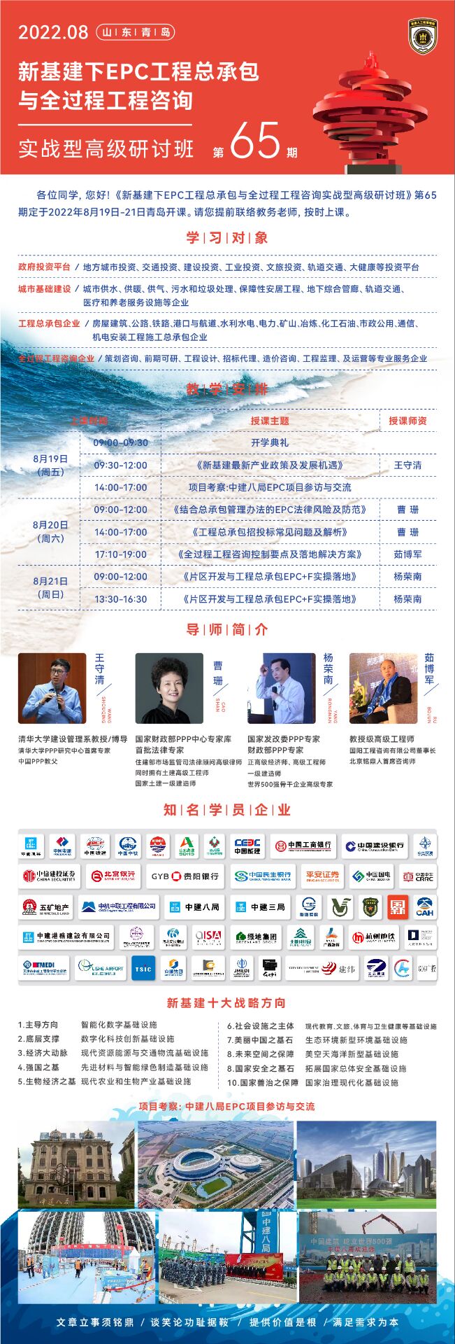 2022年8月19-21日,65期EPC走进中建8局,8局高层实战领导带您全程项目参访考察,了解EPC工程总承包作为覆盖建筑产品的全寿命周期的承包模式,将工程全过程归到统一的管理之下,提供全过程服务模式!什么要学epc总承包?随着供给侧改革的深入开展,我国需求侧的市场主导地位愈加突显,建设单位作为买方市场,势必将更多选择对其更有利的EPC工程总承包模式。8月19-21日青岛epc实战研讨班,我们不见不散!