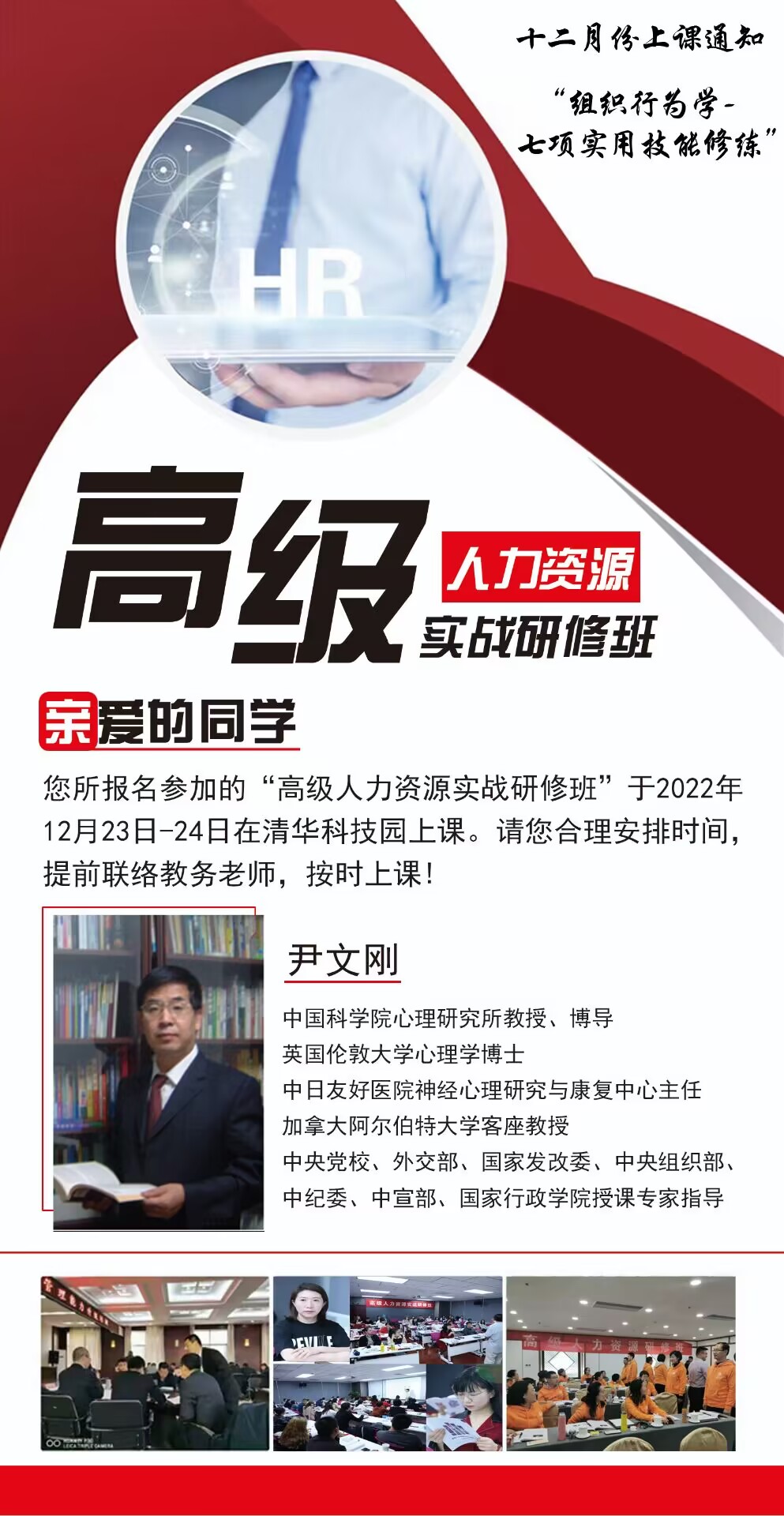 导读:高级人力资源研修班2022年12月23-24日课程安排 课题:组织行为学-七项实用技能修炼 老师:尹文刚