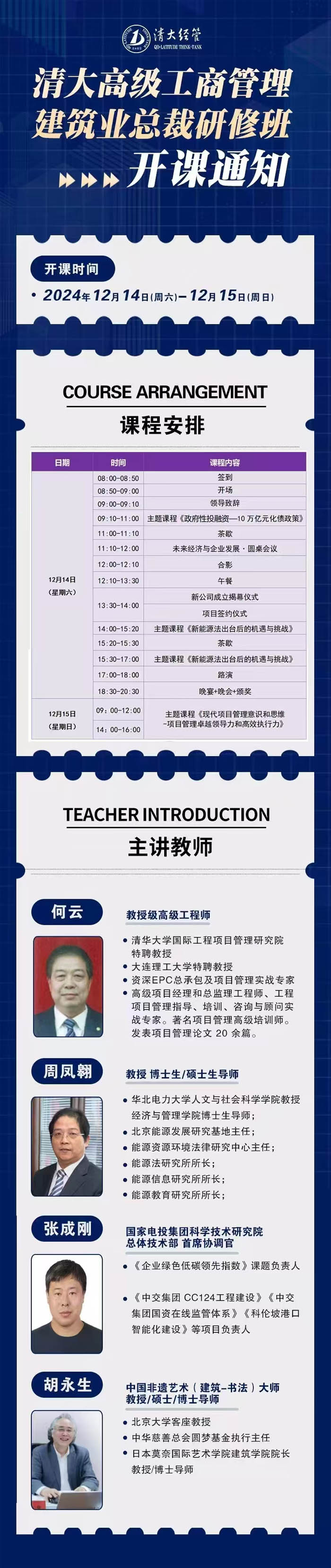 12月15日由清华大学国际工程项目管理研究院特聘教授何云,结合38年工程项目管理实践经验,以案例教学为主。开阔思路,提高学员现代项目管理意识和思维,掌握项目管理高效执行力的核心,改善领导层面管理水平及能力。
