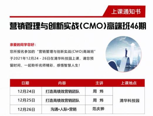 2021-11-16 12:42:53清大EMBA研究中心工商管理总裁班2021年12月开课通知