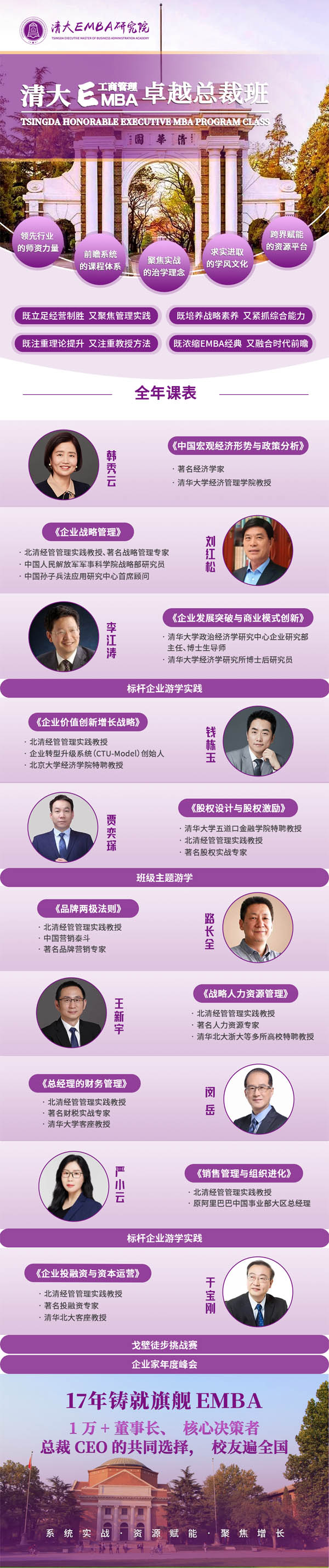 下面为大家整理出清大EMBA卓越总裁班全年课程安排表。