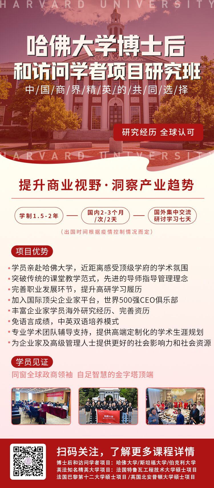 现博士后与访问学者项目现将近50名正式学员,学员以北京、上海、深圳为主,企业规模在5亿-100亿之间,学员行业集中在投资、医疗、金融、证券、科技创新、矿业、房地产、制造业、法律服务等行业。