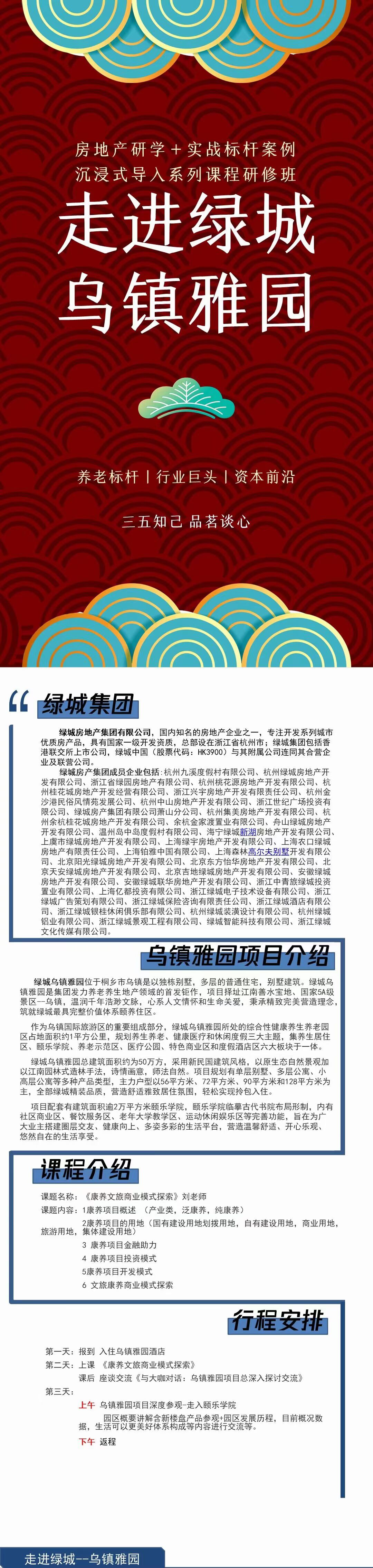 | 清大房地产高级研修班研学活动安排——走入乌镇雅园 | |||