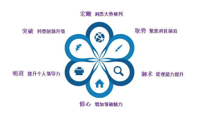 卓越工商班课程涵盖六大体系:一、宏瞰:企业战略思维与商业格局;二、取势:新技术与新生态;三、御术:企业核心管理能力提升;四、突破:转型发展与创新升级;五、明道:卓越领导力与领导修为;六、修心:清华文化与价值塑造。全面培养具备卓越管理能力和领导魅力的卓越企业家。