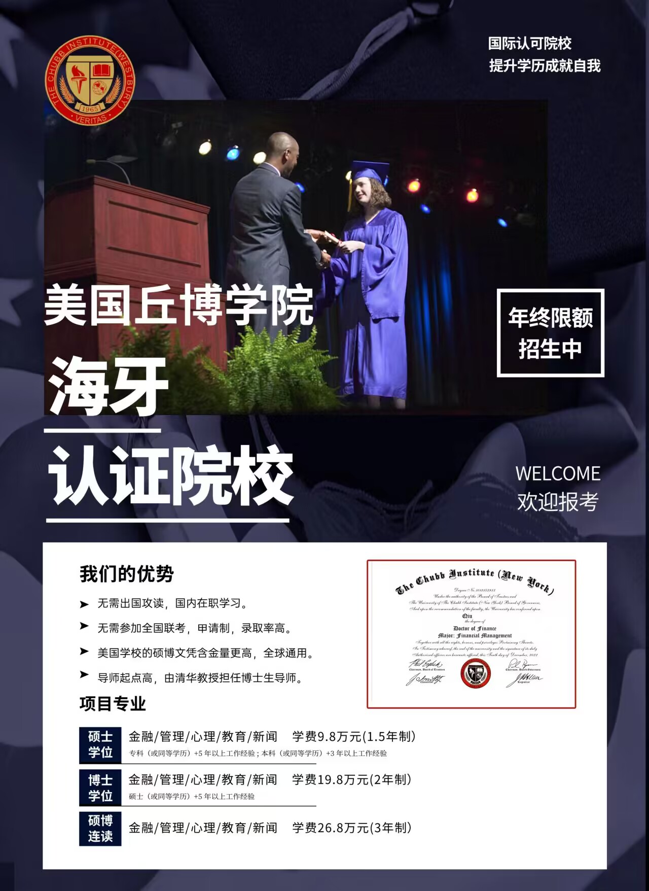 美国丘博学院硕士/博士学位班火热招生中
