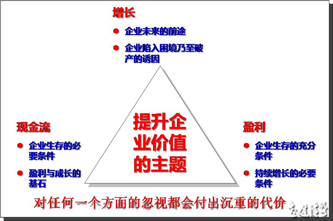 l 现金流:如何保证你的企业有充足的“血液”。 l 成长性:如何规划收入来源和制订收入增长战略。